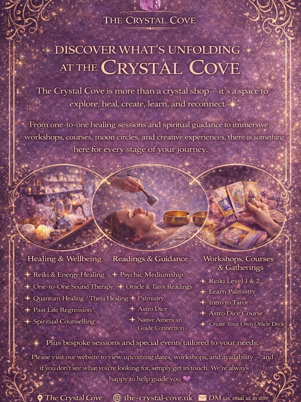 At The Crystal Cove, we believe that true healing begins by reconnecting to the wisdom within. Our brand was born from a passion for the Earth’s sacred gifts — crystals, energy, and ancient knowledge — and a deep desire to create spaces where transformation feels natural and nurturing. Every offering, from our handpicked crystals to our healing therapies and spiritual guidance, is chosen with heart, intention, and care. We are more than a shop; we are a sanctuary for the soul. Our mission is to empower, uplift, and inspire, helping you align with your own light, awaken your inner strength, and walk your path with clarity, peace, and purpose. Here at The Crystal Cove, healing is not just a service — it is a way of life, a return to wholeness, and a celebration of the beautiful journey you are on.
